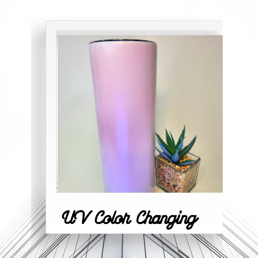 Bring some fun to your drinkware with our 20oz UV Color Changing Tumbler! Watch as the colors transform with the sun, adding a playful touch to any design. Customize it to your liking, or leave it as is for a unique and quirky addition to your collection.