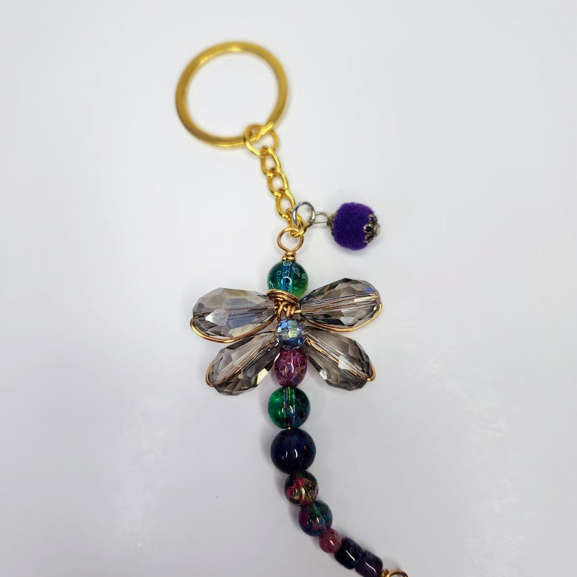 Handcrafted Copper Wire Dragonfly Keychain With Mu Cltiolor Beads
